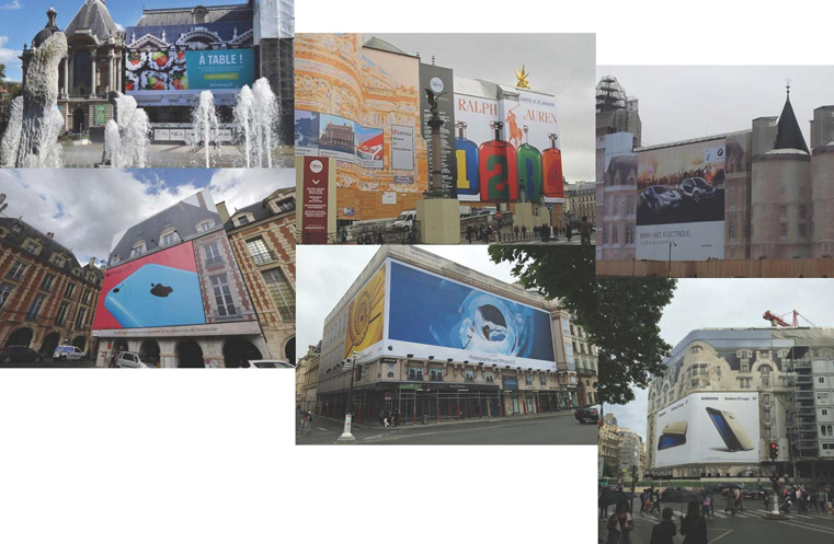 En mettant ainsi sur le marché publicitaire notre patrimoine, c’est son image à long terme que nous altérons et le commerce qui prend la place de la culture. Les publicités sur l’hôtel Lutetia à Paris (vendu en 2010 pour 135 millions d’euros) sont-elles réellement nécessaires à sa restauration ? S’accordent-elles avec l’histoire – tragique – de ce lieu ? Que dire de celles sur le Palais de Justice ? Sur certains ensembles urbains intégralement protégés au titre des monuments historiques, comme la place des Vosges à Paris, ces dispositifs dits exceptionnels se succèdent et transforment les lieux en un espace publicitaire permanent.