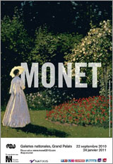 27.08.10 | Claude Monet (1840-1926) - "Pendant plus de soixante ans, Claude Monet a peint sans relâche, élaborant une oeuvre qui incarne l’expression la plus pure de l’impressionnisme, pour constituer au début du xxe siècle un des fondements de l’art moderne. C’est l’ensemble de ce parcours riche et fécond que l’exposition des Galeries nationales réinterroge. Cette exposition monographique est la plus importante manifestation dédiée à l’artiste depuis près de trente ans, lorsque s’était tenue aux Galeries nationales en 1980 une rétrospective en forme d’hommage. Depuis, les recherches sur l’artiste se sont multipliées et ont mis en lumière des aspects moins connus de son oeuvre (...) A travers près de deux cents œuvres, cette rétrospective veut susciter la surprise, la réflexion et la délectation du visiteur grâce à des œuvres célèbres et des tableaux méconnus, mais aussi grâce à des rapprochements inhabituels et des regroupements d’œuvres inédits. L’exposition veut également renouveler l’approche d’un grand artiste avec lequel s’accomplit le passage du XIXe au XXe siècle. Source : Texte officiel